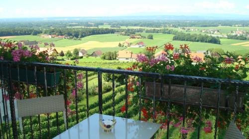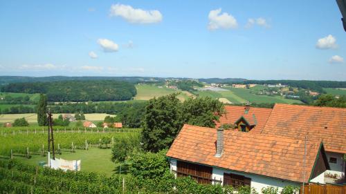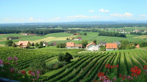 Unser Haus liegt inmitten von Weinbergen, öffnet Ihnen den Blick bis hin zur Koralpe und nach Slowenien.